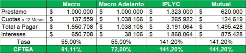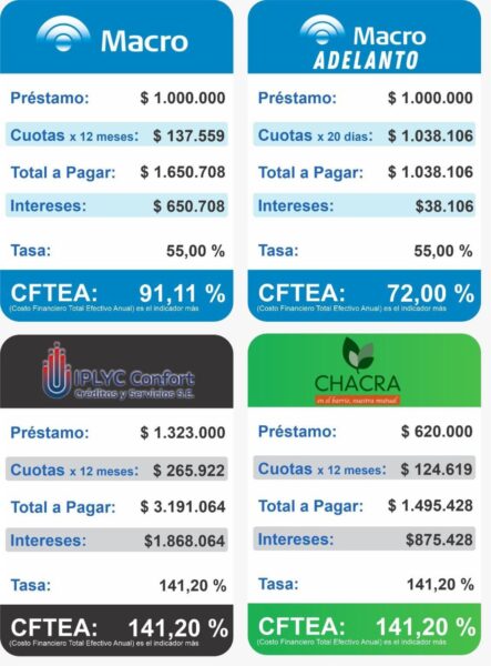 • Tasas Abusivas: El costo financiero en mutuales e institutos llega al 141,20%, superando ampliamente al Banco Macro.