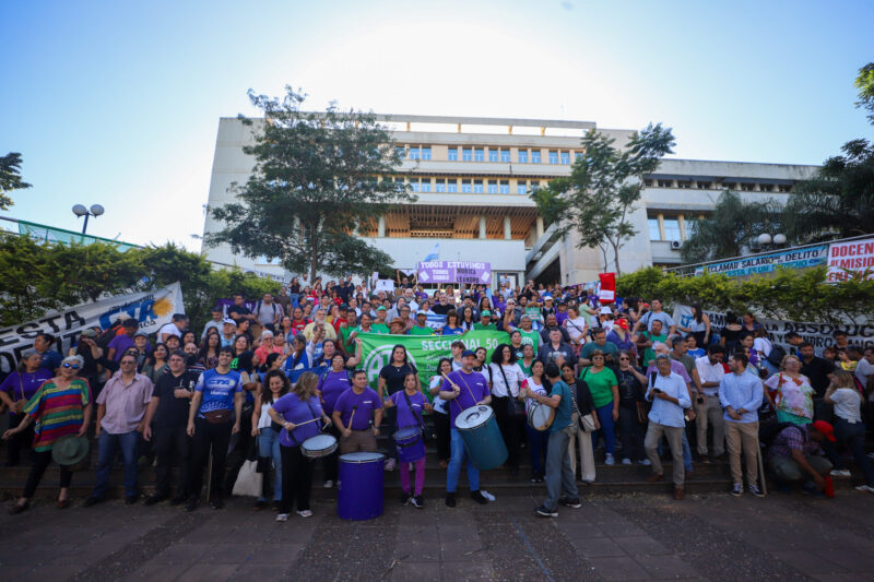 Este martes comenzó en el SUM del Palacio de Justicia de Posadas el primer día del juicio oral contra los docentes Mónica Gurina y Leandro Sánchez, acusados por su participación en el acampe realizado en la avenida Uruguay en junio de 2024. La causa, cuestionada desde distintos sectores sindicales y políticos, llega a debate con fuertes críticas hacia el rol de la Justicia y el proceso que llevó al banquillo a dos trabajadores de la educación.