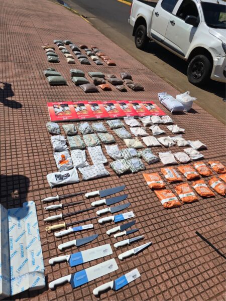 El resultado del registro fue contundente: los uniformados incautaron una gran cantidad de maquinaria y accesorios para la elaboración de embutidos, tales como cuchillas industriales, serruchos, engranajes mecánicos y documentación de compra que será analizada para determinar su procedencia.