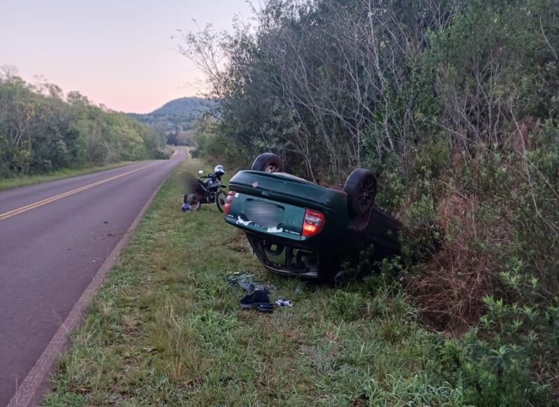 La Policía halló un Chevrolet Corsa volcado en la Ruta 5, a la altura del puente El Chapa. El vehículo estaba vacío y se desconoce el paradero de los dos jóvenes que iban a bordo.
