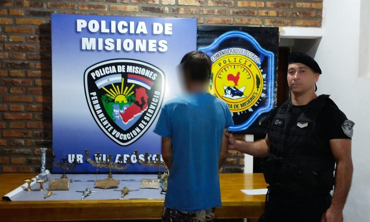En una intervención llevada a cabo este mediodía, agentes de la Unidad Regional VII de Apóstoles atraparon a Mauricio P., de 24 años, quien era buscado por el robo de lápidas y estatuillas de bronce que fueron robadas de un cementerio de esa localidad.