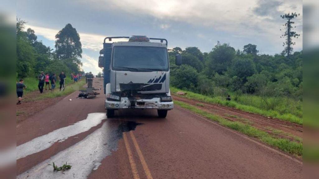 El siniestro se registró a las 17:45 horas, a 200 metros del arroyo El Verde, cuando una motocicleta Honda XR impactó contra un camión marca Volvo.