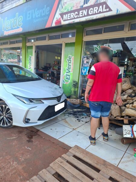 El hecho ocurrió este sábado, alrededor de las 17:00 horas, cuando un Toyota Corolla perdió el control en la Avenida Corrientes e impactó violentamente contra el frente de un supermercado local.
