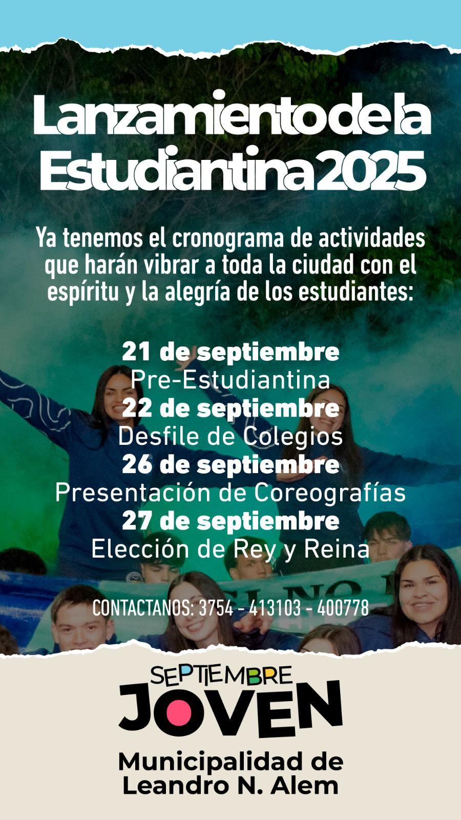 La Municipalidad de Leandro N. Alem lanzó oficialmente la Estudiantina 2025. Conocé el cronograma completo de actividades y todo lo que se viene.