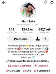 Vecinos de Campo Grande la reconocen, la saludan y siguen de cerca su crecimiento digital. En TikTok se la encuentra como marii zeta, nombre que ya empezó a sonar fuerte dentro y fuera de Misiones.