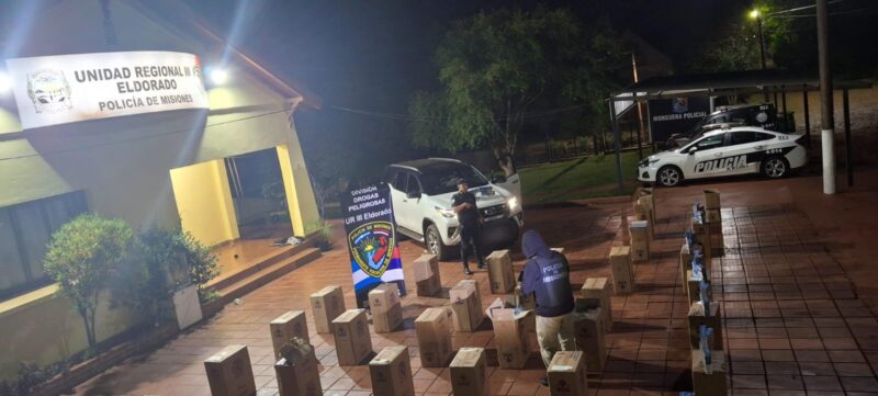 Un operativo policial de alto impacto terminó con el secuestro de una camioneta Toyota SW4 robada en Brasil y cargada con un millonario contrabando de cigarrillos. La fuga comenzó pasada la 1 de la madrugada del jueves, cuando el conductor del rodado evadió a toda velocidad un control vehicular ubicado sobre la Ruta Nacional 12 y la avenida El Fundador, en Eldorado.