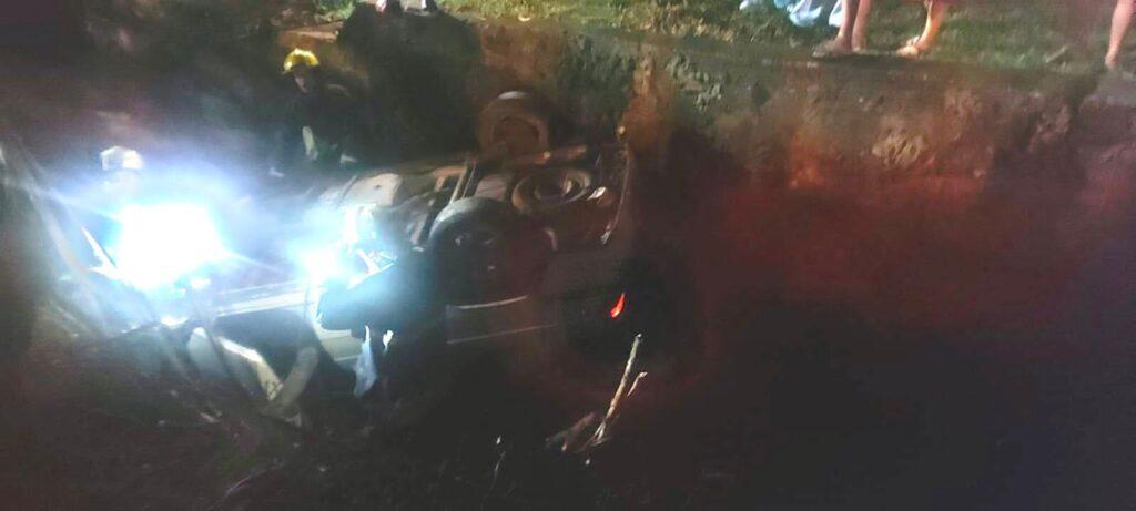 Ah raiz del siniestro el vehículo con los dos ocupantes se da a la fuga del lugar, a pocos metros pierden el control del rodado, terminan despistando y cayendo sobre el Arroyo Arriame.
