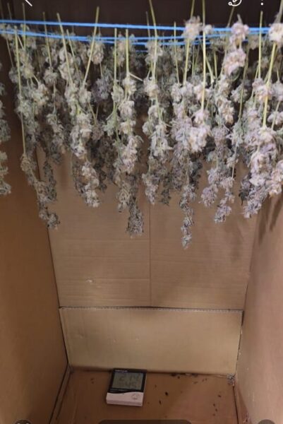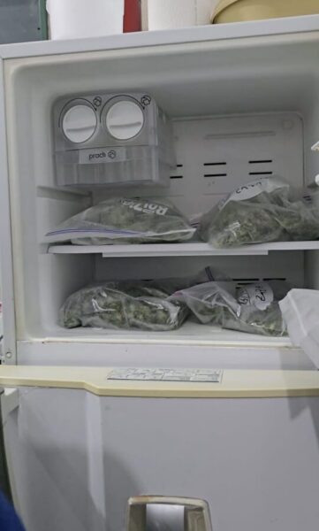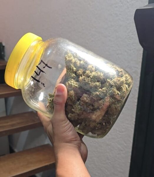 Dentro del lugar hallaron 119 plantas de cannabis —80 adultas y 39 plantines—, frascos con cogollos listos para la venta, bolsas con restos vegetales, una balanza de precisión, 20 frascos vacíos y un equipo de aire acondicionado que regulaba la temperatura ideal para el cultivo. Todo estaba dispuesto con ventilación, iluminación artificial y control térmico, como un invernadero profesional.