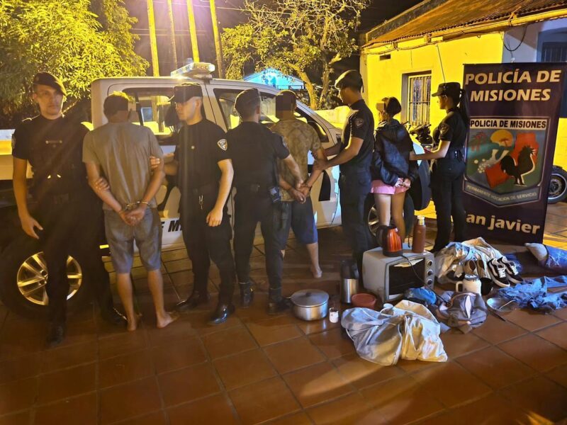 En la madrugada de hoy, agentes de la Comisaría Jurisdiccional y la División Comando Radioeléctrico de San Javier aprehendieron a una mujer y dos hombres acusados de ingresar a una vivienda en el barrio Santa Rita, y sustraer electrodomésticos, utensilios de cocina y prendas de vestir. La policía fue alertada por la pareja de la sospechosa quien manifestó que la misma junto a su amante ocultaron lo robado en su propiedad.