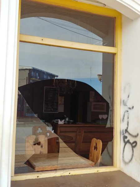 El hecho ocurrió cerca de las 7:30, cuando la dueña de la heladería Xocolat, Karen J. (61), llegó para abrir el local ubicado sobre la avenida Libertad y se encontró con el vidrio frontal estallado. Sin dudarlo, llamó a la Policía.