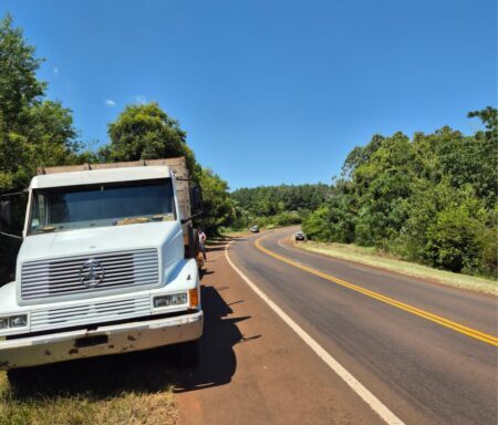 siniestro vial Caraguatay Ruta 12 camión Mercedes-Benz carga pino acoplado