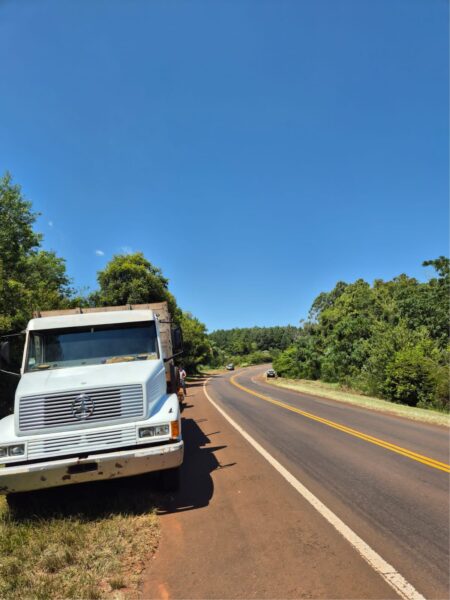 siniestro vial Caraguatay Ruta 12 camión Mercedes-Benz carga pino acoplado