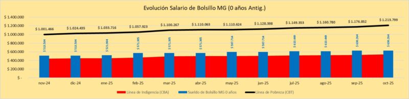 La fotografía social es contundente. En octubre de 2025, el salario inicial docente cubre:
