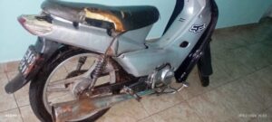 El vehículo afectado: Una motocicleta que quedó literalmente aplastada bajo los escombros del muro.