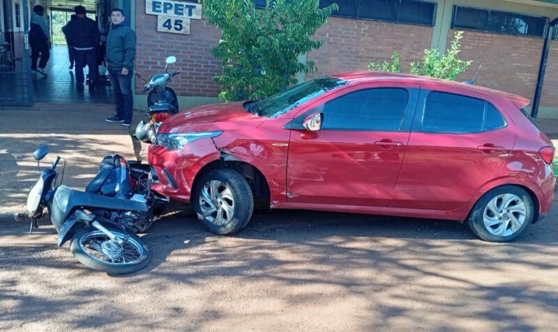 El vuelco también alcanzó a una motocicleta Motomel Blitz 110 cc que se encontraba aparcada en el lugar, la cual sufrió daños materiales de diversa consideración.